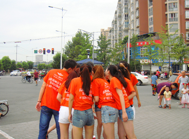 今晨, 郫縣街頭驚現《小蘋果》的又一版本,海駿達?蜀都1號“幸福青春 活力快閃”活動在郫縣全城人流集中火爆進行!項目的置業顧問統一著裝,橙色T恤加短褲,帥哥美女齊上陣, 隨著洗腦神曲《小蘋果》的開唱,置業顧問熱情洋溢地啟動舞步,在清晨的郫縣街頭形成一道青春靚麗的風景線,引得市民紛紛駐足圍觀!