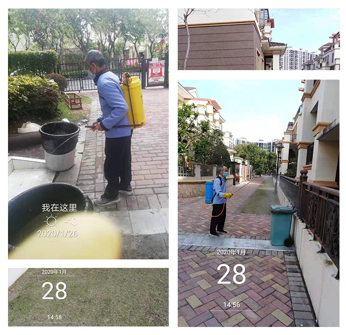 在未接到居委通知部門出入口核查湖北籍車輛的時候,已經提前微信公眾號推送通知業主,封閉東西門崗,保留南北門,禁止外來人員進入,要求員工全面調查小區內鄂字頭車牌并摸清車主動向。對全社區的所有客戶觸點、樓道、電梯間、垃圾桶進行消毒,輪流在小區主入口處值守測量體溫。所有防控工作的布置和落實,得到了政府、居委和住戶的高度評價。